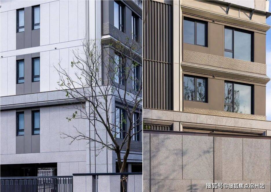 呈现时代公建化高颜气质,超高成本的中式铝板披檐及基座与横向石材干挂传递东方审美。