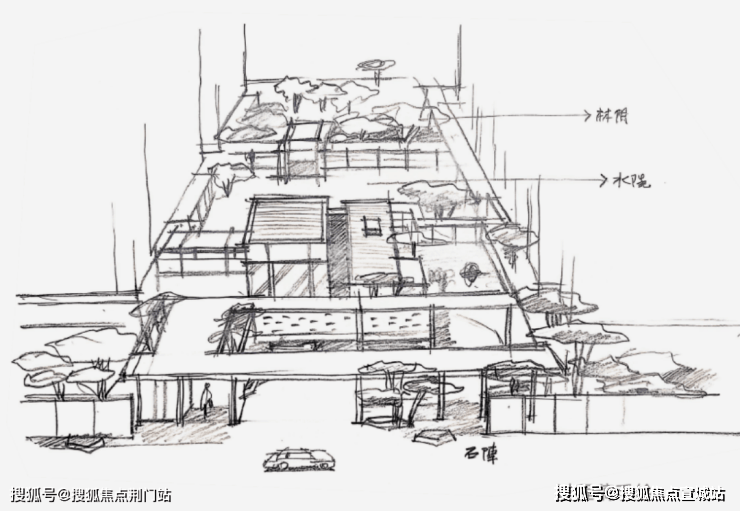 风雨归家连廊体系连通高层区域前场花园、核心花园,既为日常通行提供了舒适与便捷,又形成以水和林为主体两种不同的框景感受,赋予视觉与身心的双重享受。