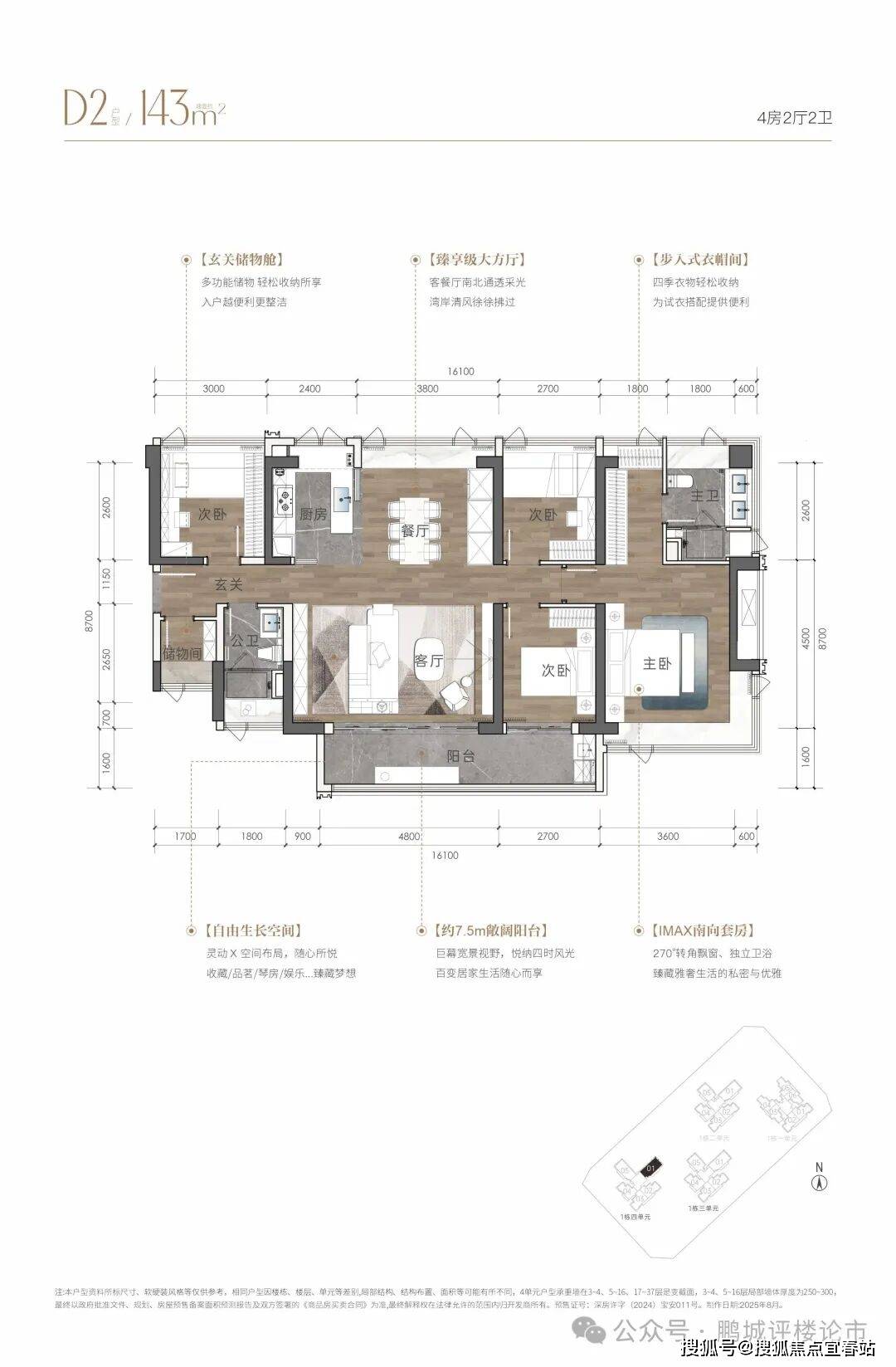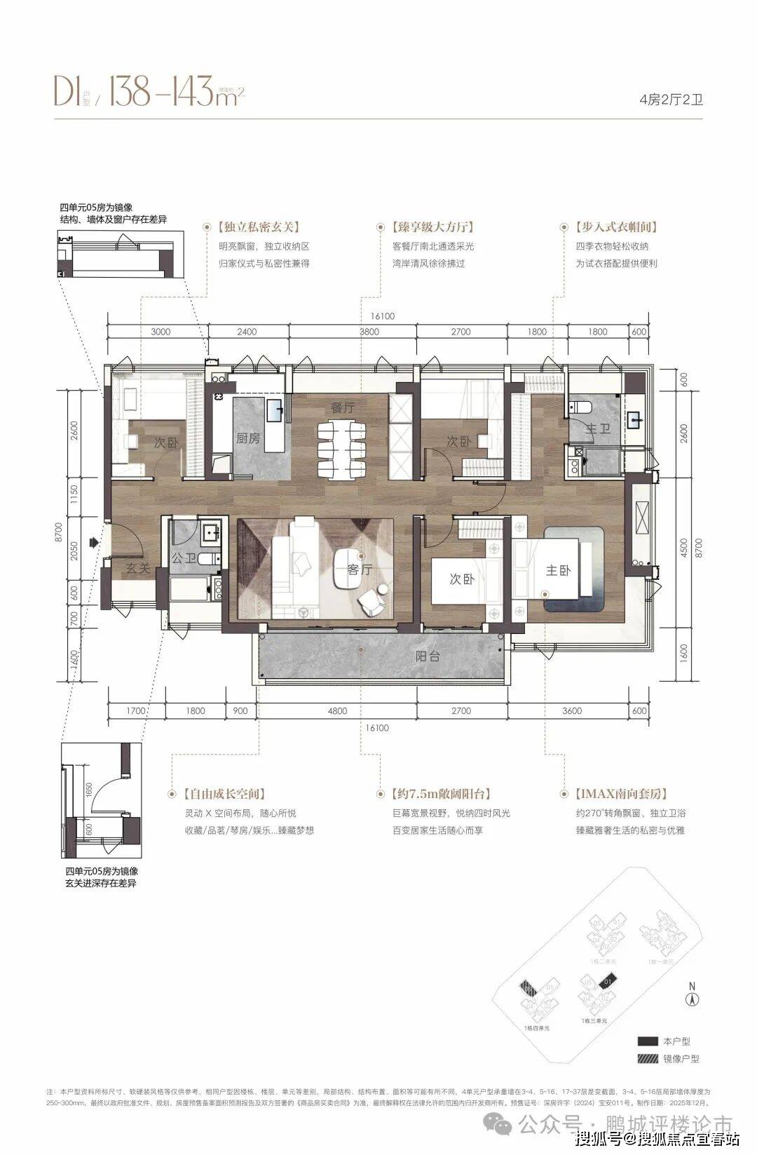1. 户型产品:有[建面约89-143㎡三至四居等]多种户型,户型图都是按官方审定的设计方案画的,标清了房间尺寸和层高,实际交房标准以最终验收合格的房子为准