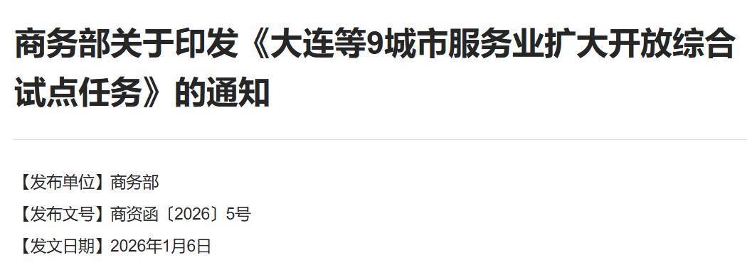 支持西安市等9城市开展先行先试,明确将2025年4月印发的《加快推进服务业扩大开放综合试点工作方案》中已赋予其他服务业扩大开放综合试点地区的103项试点任务和3项新增试点任务,在9城市一体化推进实施,提升试点工作效率。