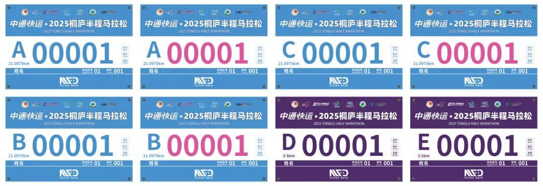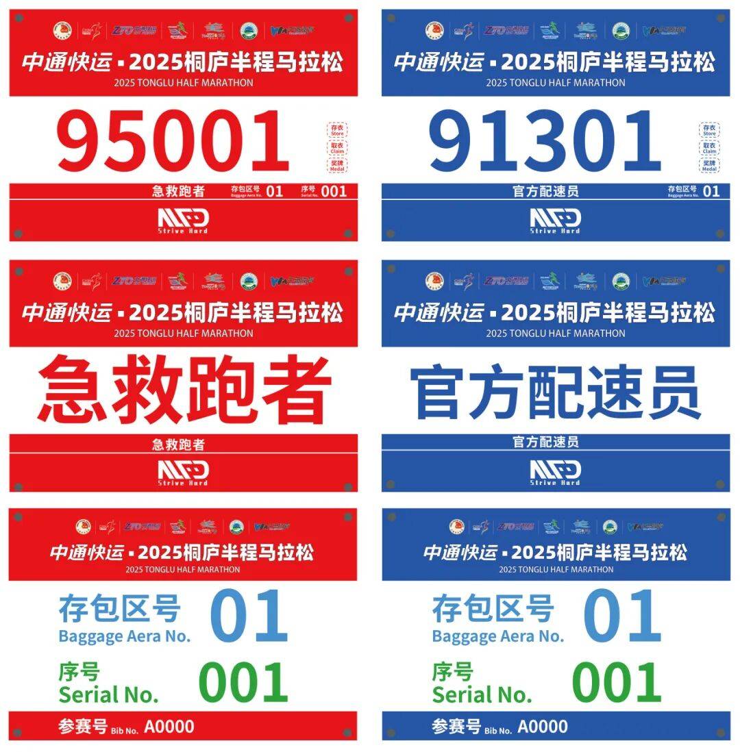 号码布颜色和首字母代表参赛者已报名参加的比赛项目和起跑区域,只有正确佩戴号码布的参赛者才允许进入检录区,根据号码布上的首字母进入指定起跑区。