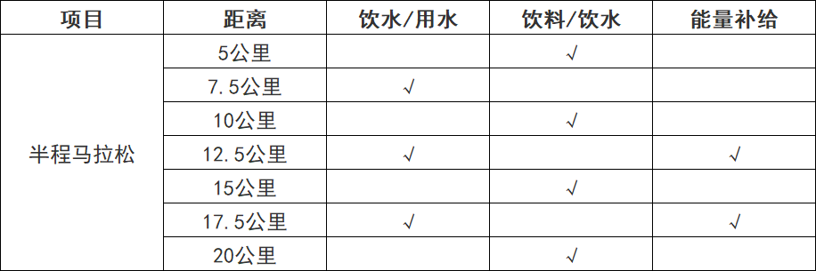 (二)医疗站设于起点、2.5KM处、5KM处、7.5KM处、10KM处、12.5KM处、15KM处、17.5KM处、20KM处、半马终点(完赛区)、半马终点(拉伸区)、迷你跑终点共计12个,赛道上设有指引牌标识(起点、终点完赛区、拉伸区、迷你跑终点各配备2医2护,16人;其余8个医疗站每站1医2护,24人)共40人组成。